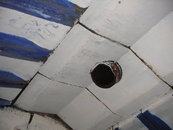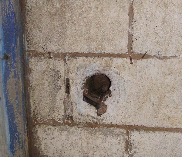 The entrance shaft The original entrance cover is long gone but some rusted workings still remain. A soil box blended the cover into the hedgerow. A man-hole key was used to drop the box onto the track and slide it into the embankment. A home-made ladder was then used to climb down into the OB.