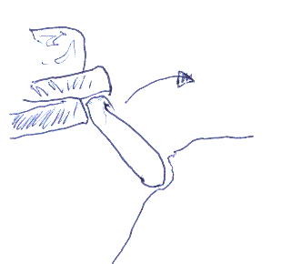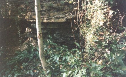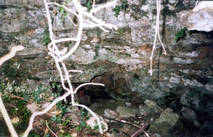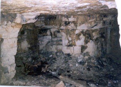 Inside was a narrow opening to the right leading down a stone scree slope to a large cave. The entrance is now (2005) obstructed.